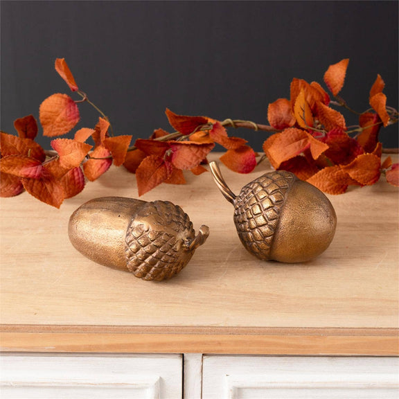 Brass Finish Acorn Accents - Set of 2
