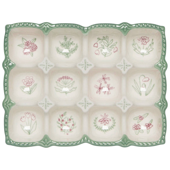 Add a touch of vintage beauty to your kitchen with the Camellia Egg Holder. This display piece boasts stunning green and mauve floral accents, making it both functional and beautiful. Elevate your cooking experience with this elegant addition to your home!
