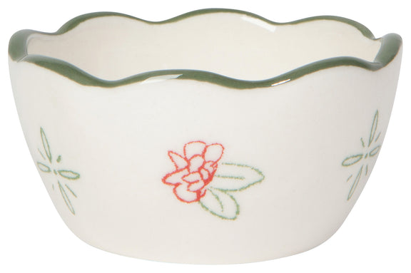 Delicate flowers in a quaint palette of sage green, wine red and bright white exude rustic farmhouse charm with this Camellia Stoneware Mini Nesting Bowls Set.