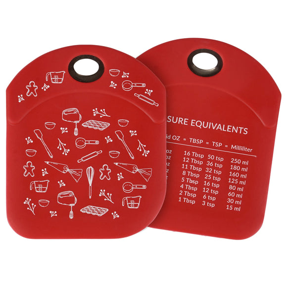 Elevate your holiday baking with our Christmas Baking Bowl Scraper! Made of durable, double-sided silicone in a festive red color, it features a charming hand-illustrated pattern of classic Christmas baking items. The sturdy stainless steel handle and measurement equivalents on the back make it a practical and stylish addition to any kitchen. Great for gifting to your fellow baking enthusiasts and bringing a touch of seasonal cheer to your home.