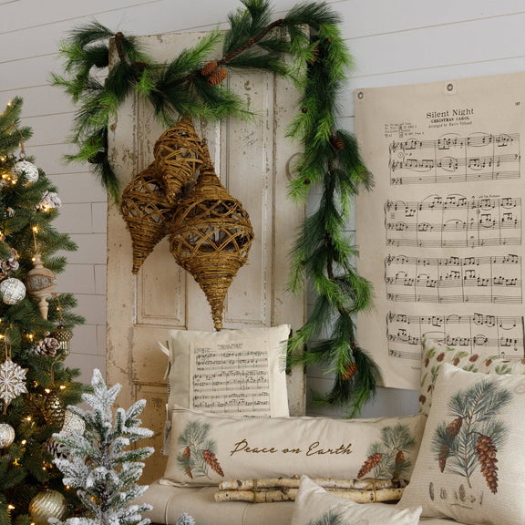 Add a touch of warmth and coziness to your home with our Peace On Earth Embroidered Pillow. The neutral color palette and embroidered sentiment evoke a sense of tranquility and serenity. The beautiful pinecones and greenery design adds a festive touch, making it a perfect addition to your holiday decor.