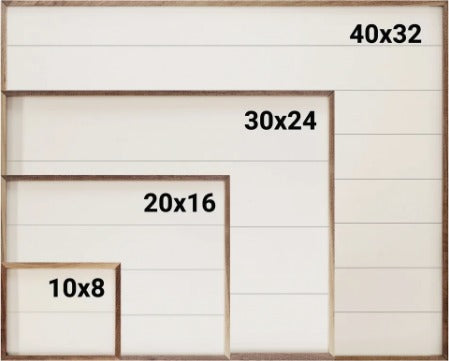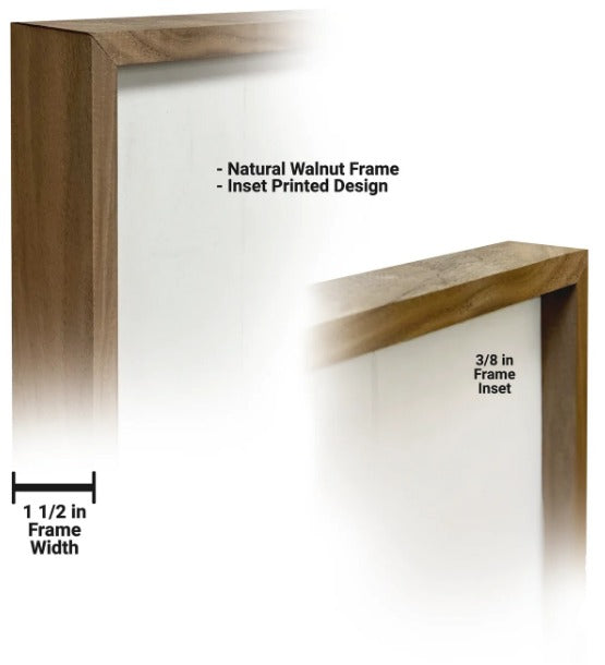 This unique piece is a simple way to bring beauty and charm to any wall or shelf within the home. It is made from high quality American hardwood planks with a hand painted face, and printed with UV cured ink, and is framed in a natural walnut frame. Each piece is unique with its own personality, marks, wood grain, and look. Easy to clean with a dry cloth.