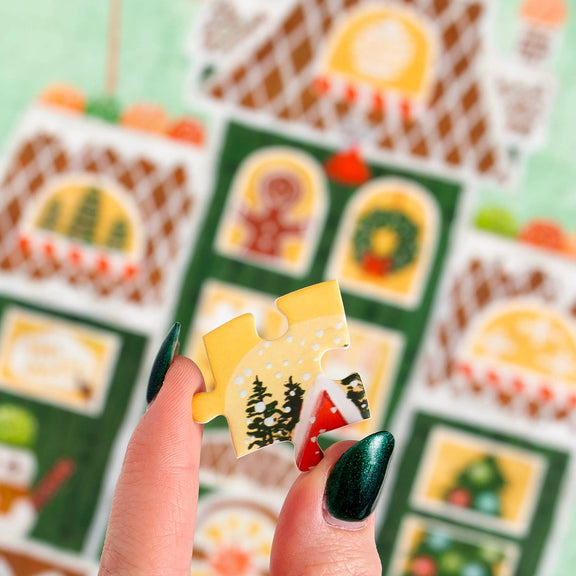 Featuring a variety of hand-painted illustrations, our Gingerbread Christmas puzzle makes a great gift for your favorite baker, dessert lover, or festive friend. A perfect Christmas time activity for the whole family, and with 500 pieces, you'll have a jolly time putting together this sweet scene, including the gingerbread manor, sugary gumdrops, festive snowman, Christmas tree, ornaments, wreath, and more!