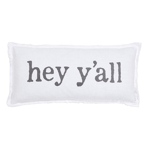 Add a touch of southern charm to your living space with our Hey Ya'll Lumbar Pillow. This comfortable, supportive pillow features a sweet southern greeting and a neutral grey and white color scheme to brighten any room. The duck feather insert and machine washable cover make it both comfortable and easy to maintain.