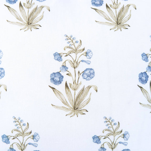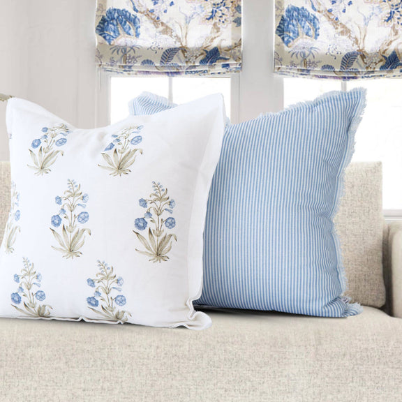 Lucy Hand Painted Block Print Floral Pillow Cover in Blue