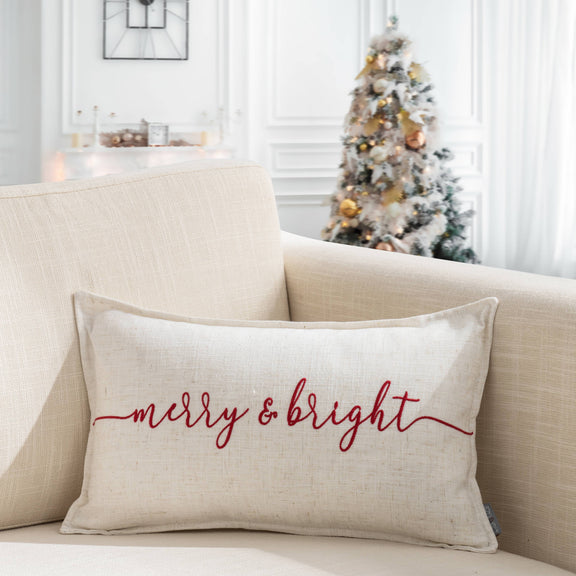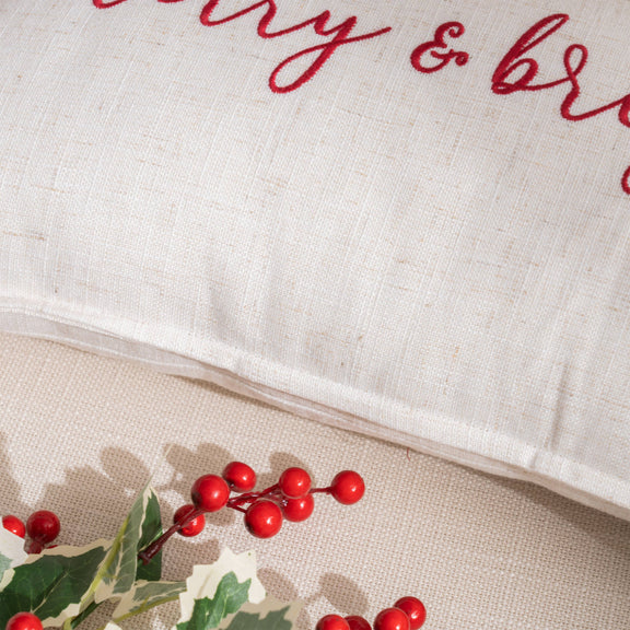 Cozy up and get merry with this neutral farmhouse linen pillow featuring a bright red embroidered design! Feeling soft and inviting, this pillow is the perfect addition to your home - the perfect blend of festive and rustic.
