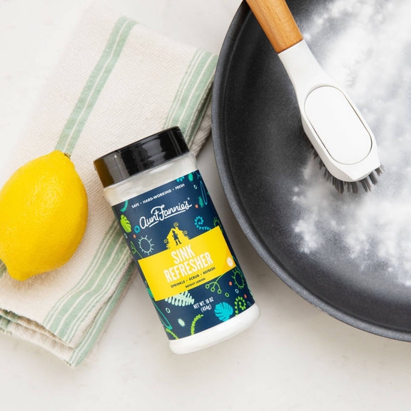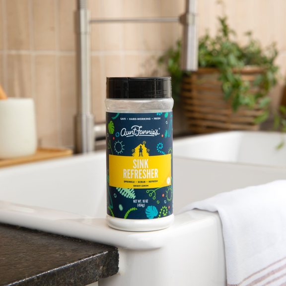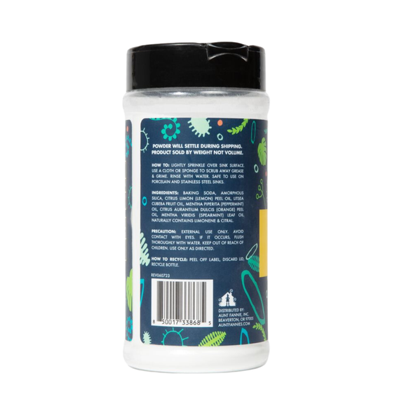 The power packed powder tackles the gunk in sinks and more. It scrubs away grime safely on sink surfaces, including porcelain and stainless steel. And this multi-purpose scrub can also help with crusty pots & pans. It helps neutralize odors in the drain, and a little sprinkle in the trash can goes a long way. Great for tile and tubs in the bathroom as well. All this hard work with the refreshing smell of lemons!
