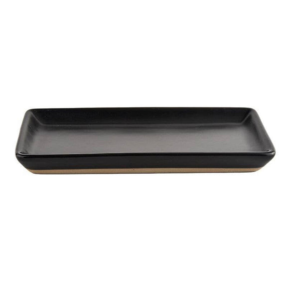 Our stoneware tray is the perfect addition to your kitchen and home. Use them to corral your soap dispenser and scrub brush at the kitchen sink, or as a vanity tray in your bathroom. They are also perfect for pairing our signature candles with your favorite glass jar safety matches. These modern trinket dishes are also perfect as a jewelry dish, key holder, and even as an appetizer plate! The uses are endless for our modern black rectangle dish.