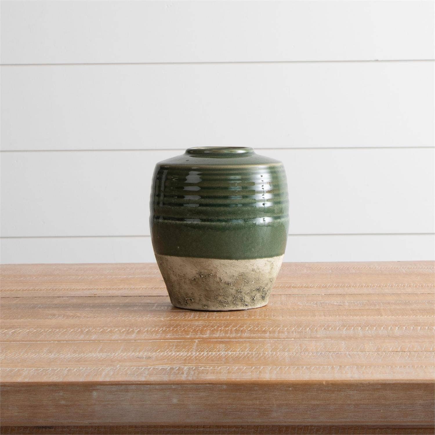 Green Two-Toned Cement Vase