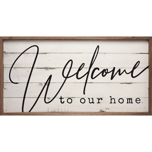 Brighten up your entryway and greet your guests with this beautiful shiplap sign. 'Welcome To Our Home' is the perfect neutral sign for any season.