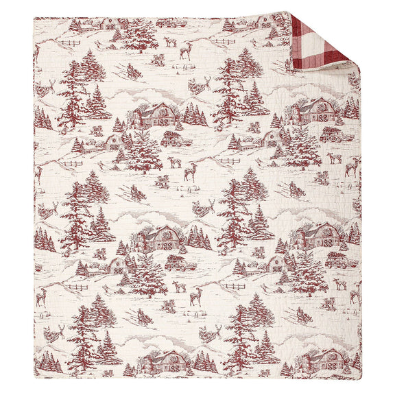 Experience the warmth of holiday nostalgia with this dual-sided quilted throw that brings festive elegance to any space. One side showcases an enchanting vintage winter village scene, while the other reveals a classic red and cream plaid pattern—giving you flexibility to match your mood or décor. The rich, timeless color palette works beautifully in bedrooms, living rooms, or dens, instantly elevating your home's seasonal ambiance. Crafted for durability, this throw withstands regular use and washing, making it a lasting investment in comfort and style for holidays to come.